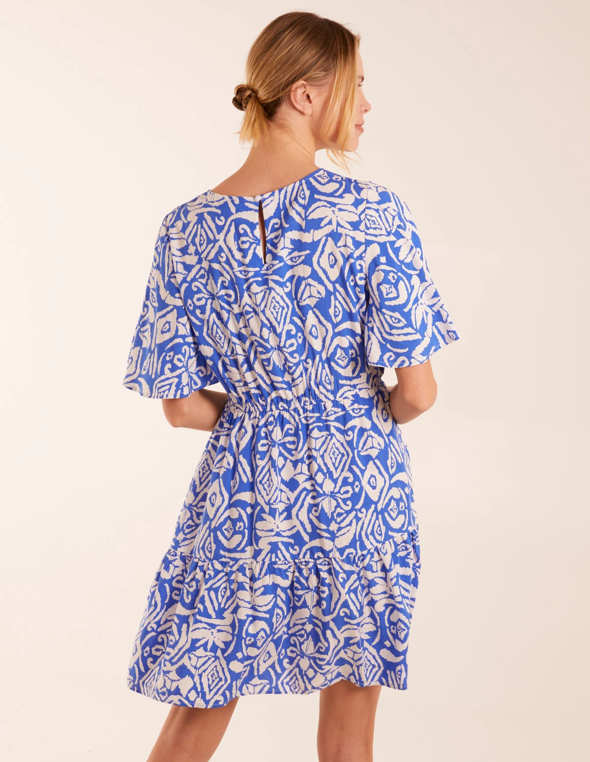 Crew Neck Aztec Tiered Mini Dress
