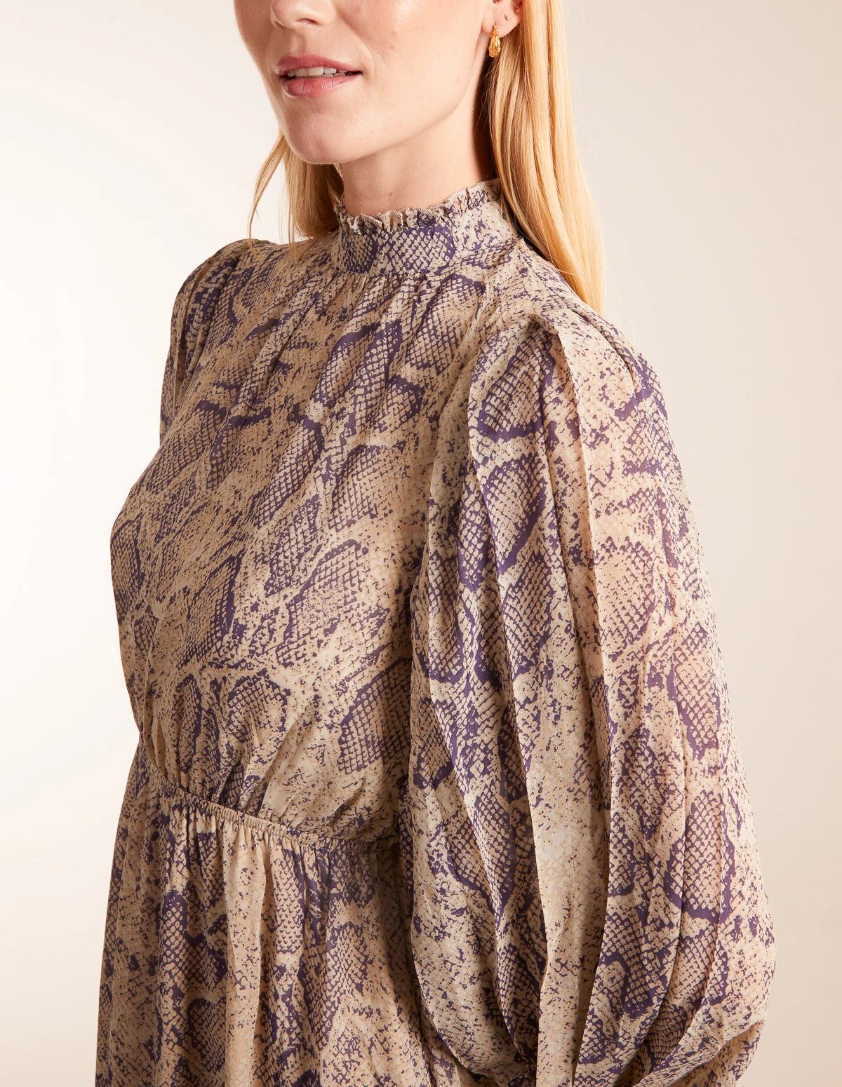 Be the first to review “High Neck Pleated Sleeve Reptile Midi Dress” Cancel reply
