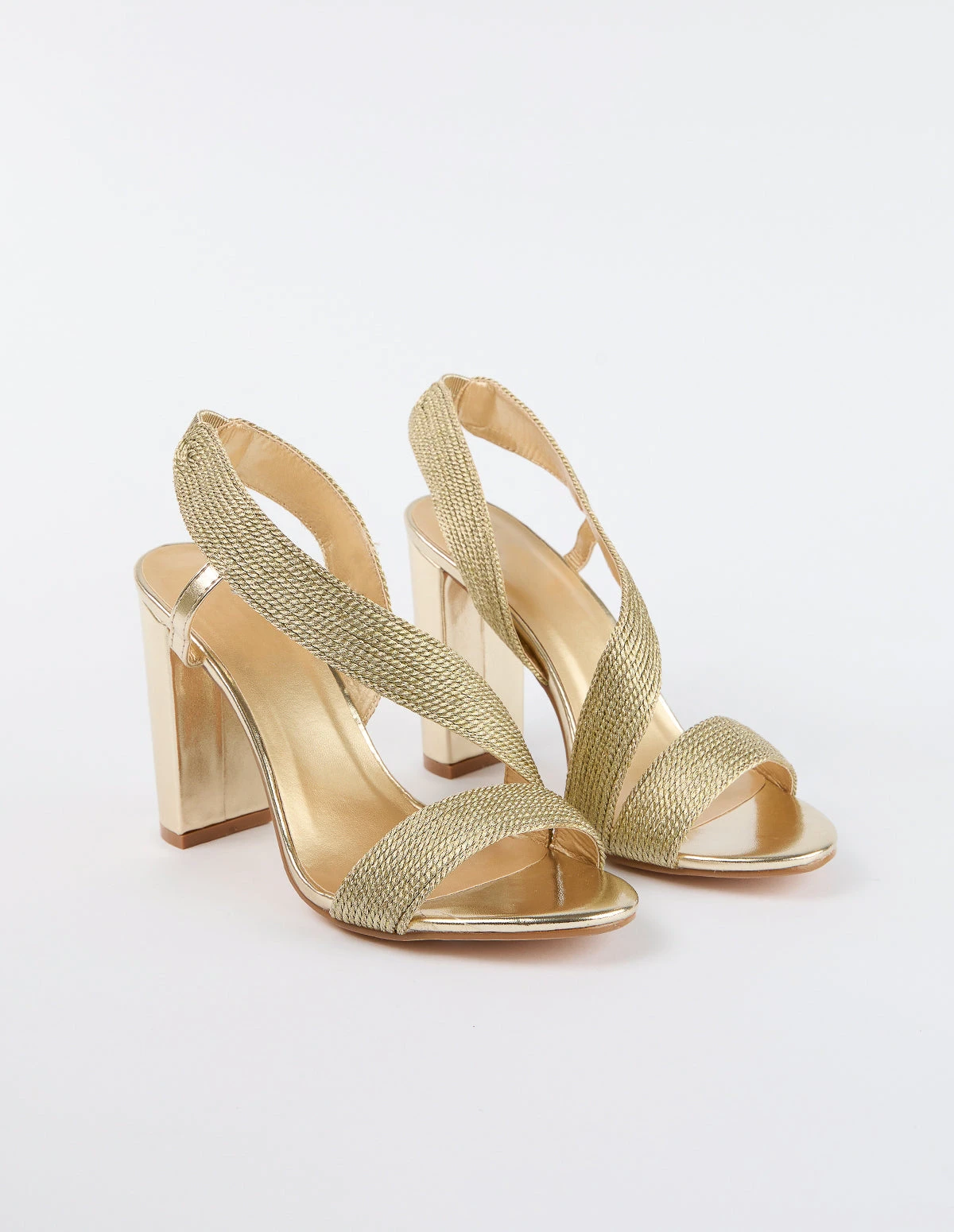 Finish off your flawless ‘fit summer occasion look with these metallic rope detailed block heels.
