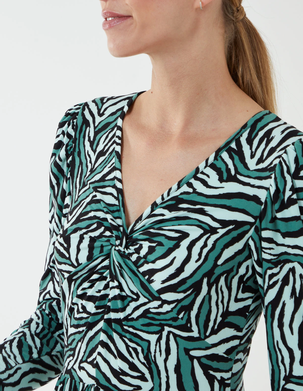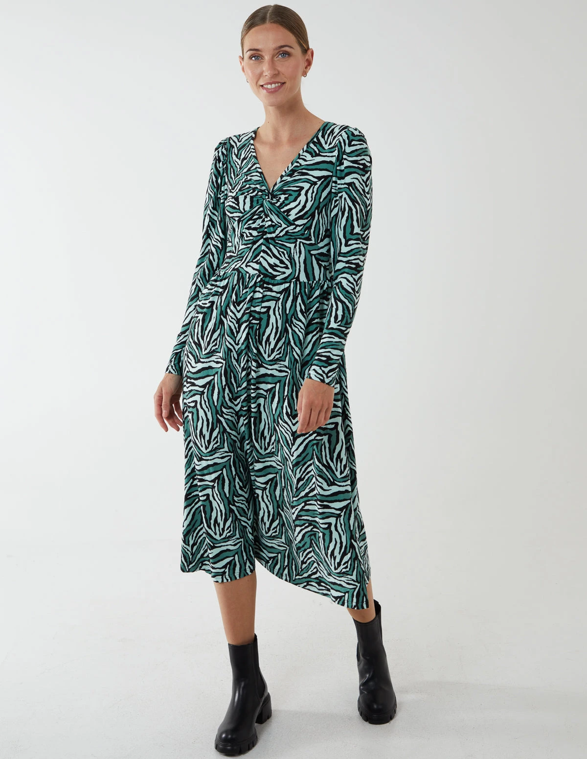 Step into a new style era and never look back with the Twist Front Midi Dress. This print dress also includes a chest twist front and a midi length. Now that you have styled this dress with ankle strap high heel boots, enjoy a lovely evening with your special someone.
