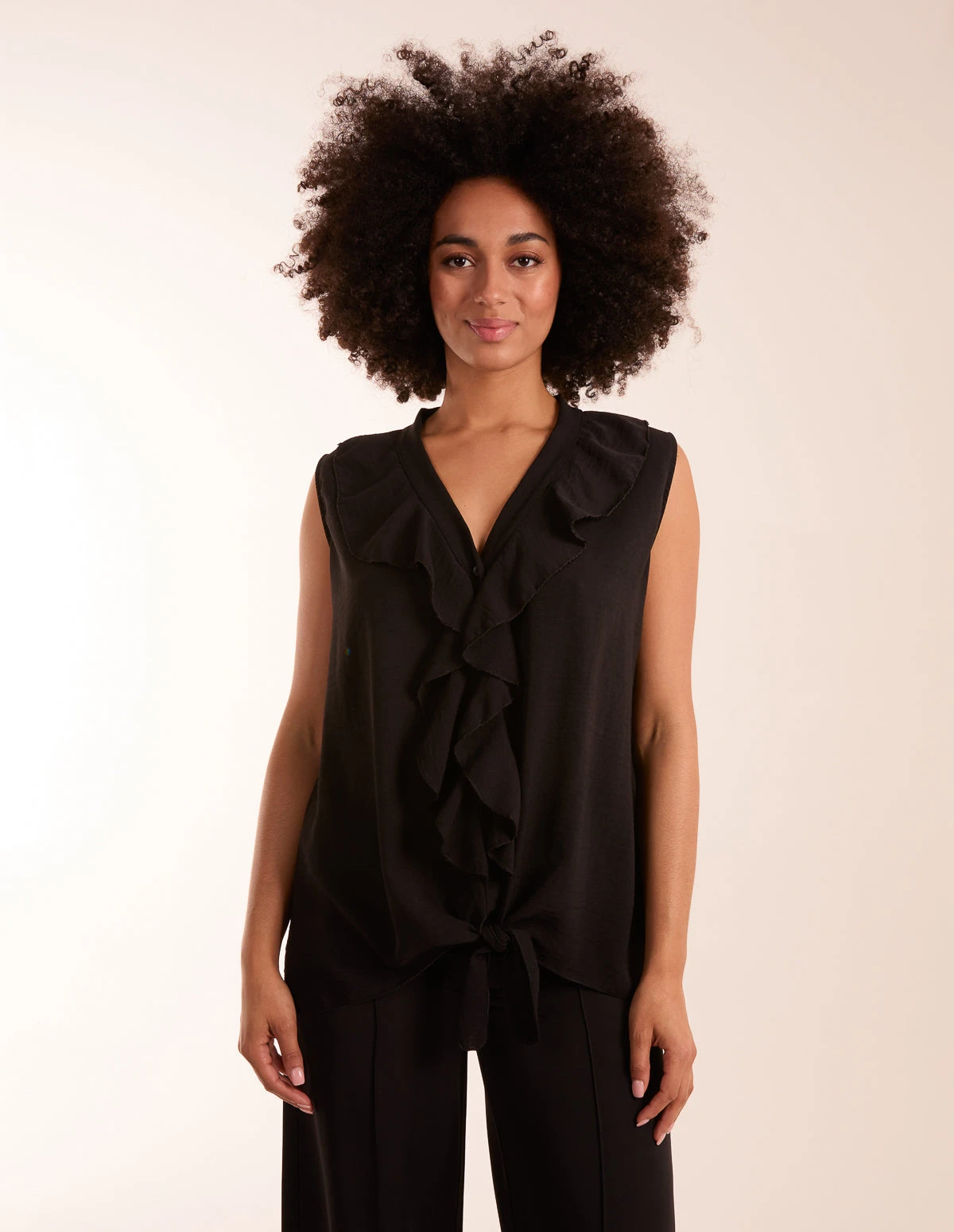 Turn heads in this stunning top. The statement ruffle will keep you up to date with all the latest trends this season. Style with black trousers and high heels for an office look.