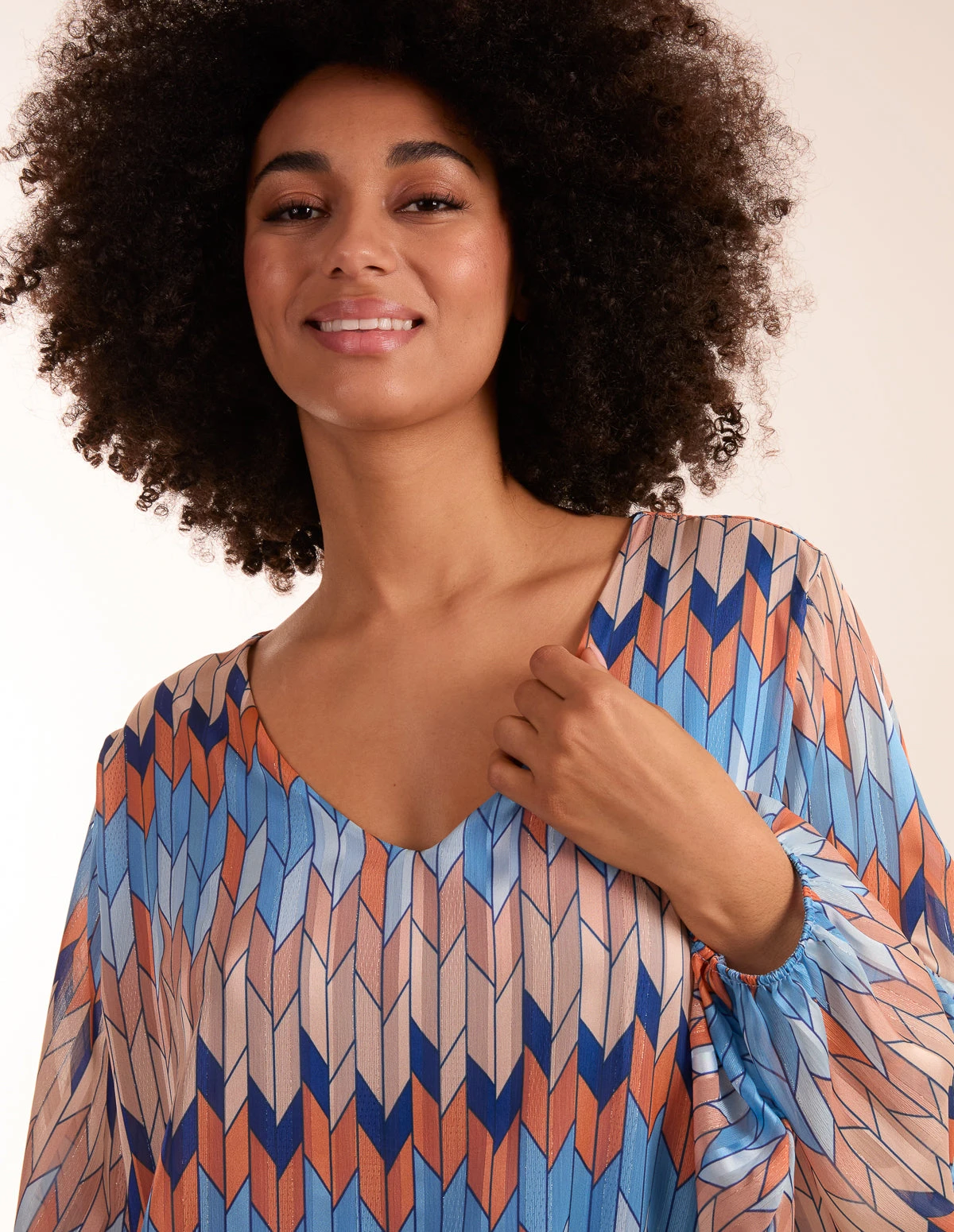 Your favourite blouse has landed. Our bold zig zag printed Blouse screams summer time! Complete the look with light-coloured trousers and pumps!