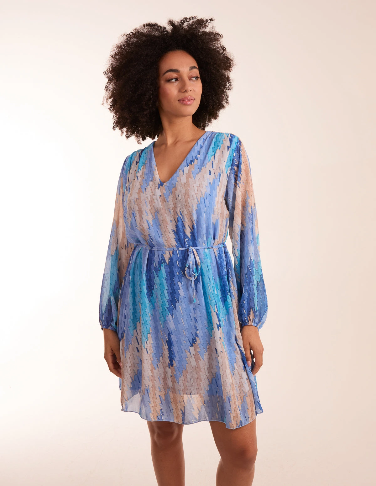 A wardrobe stunner, this belted mini dress is perfect for looking glamorous on any occasion. With a zig-zag print, belted waist and flowy skirt design. Accessorize with fine jewellery and heels for off off-duty look.